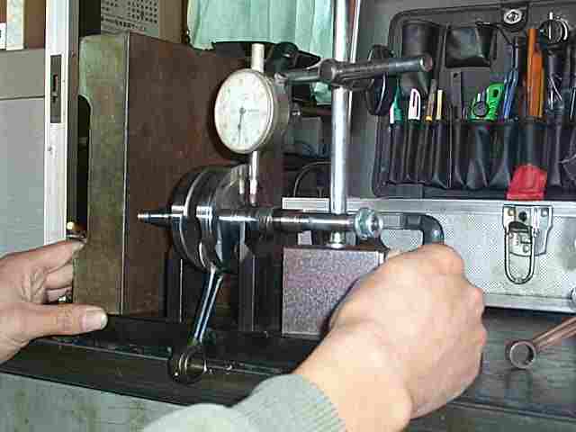 そしてコンロッドがスムーズに動くように、私の経験とカンを頼りにピンの打ち込み具合を決めつつ、なんとかクランクピンを圧入して頂きました。
