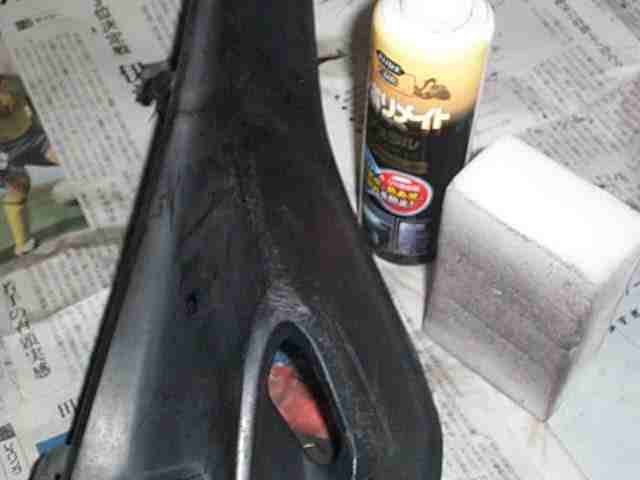 メラミンスポンジ(超微粒子研磨材スポンジ)で表面を慣らし、コーティング剤で光沢を出します。