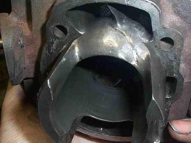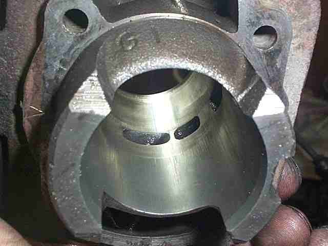 お分かりでしょうか?第1掃気と第2掃気の間のリブ部分、ここがポートの高さに沿って綺麗に抉られています。