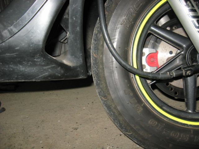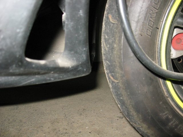 えっと、以前は3.50のフロントタイヤでも、フルブレーキング時にはココのアンダーカウルにはわずかに