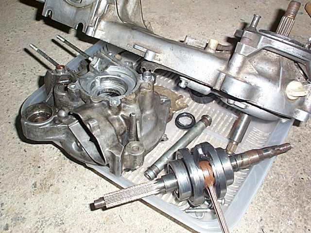 こちらは基本的な腰下のオーバーホール、クランクケースを分割しクランクシャフトを摘出、
