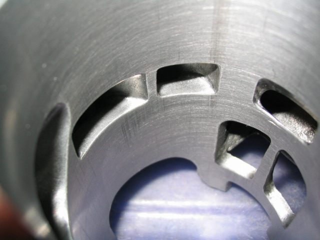 シリンダー内へ混合気の流れを導く「掃気ポート加工」、そしてリードバルブから掃気ポートまでの通路と