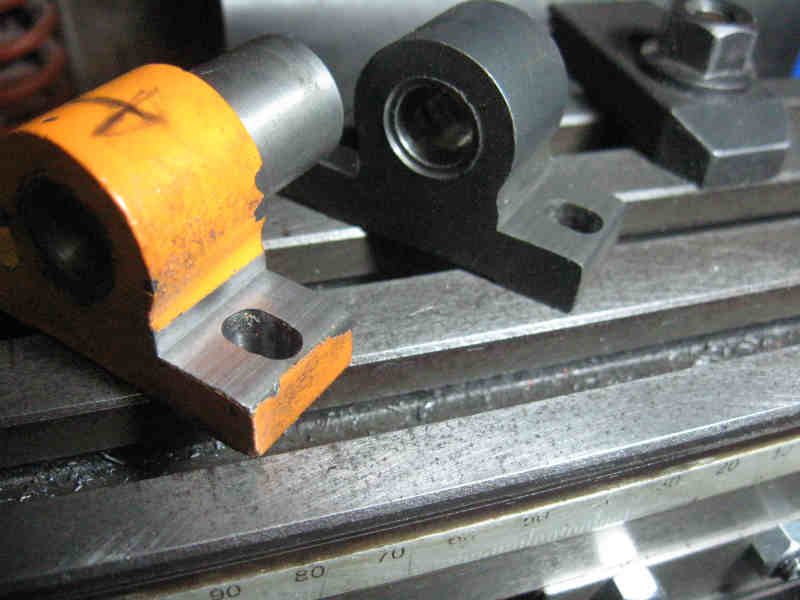 元々はシム調整や長穴加工で親ねじの収まりをフォローしてましたが、今回はこの受け部分を固定している
