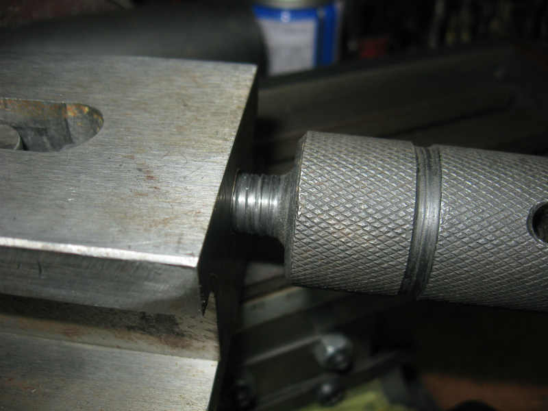 見当たらないので、残材である貧弱なただのズン切りボルトを適当に加工し、ハンドル頭にねじ込み