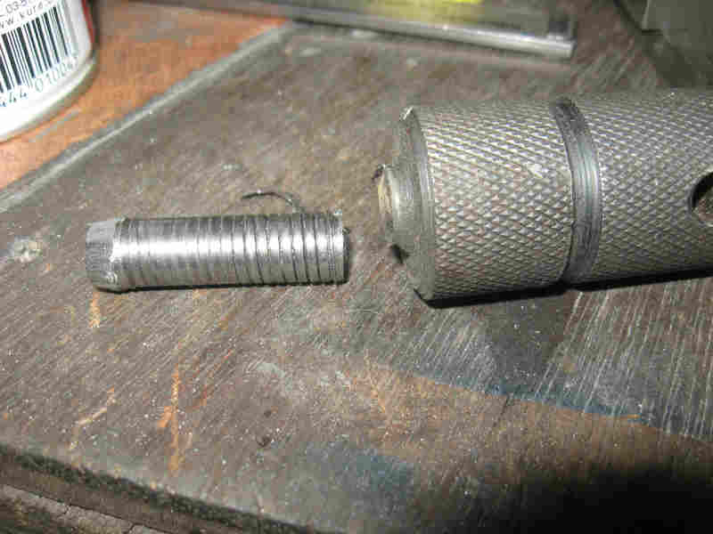 実際には本体側の雌ネジ側もそれなりに傷んでましたが…ねじ山を修正しようにも右側の写真にて