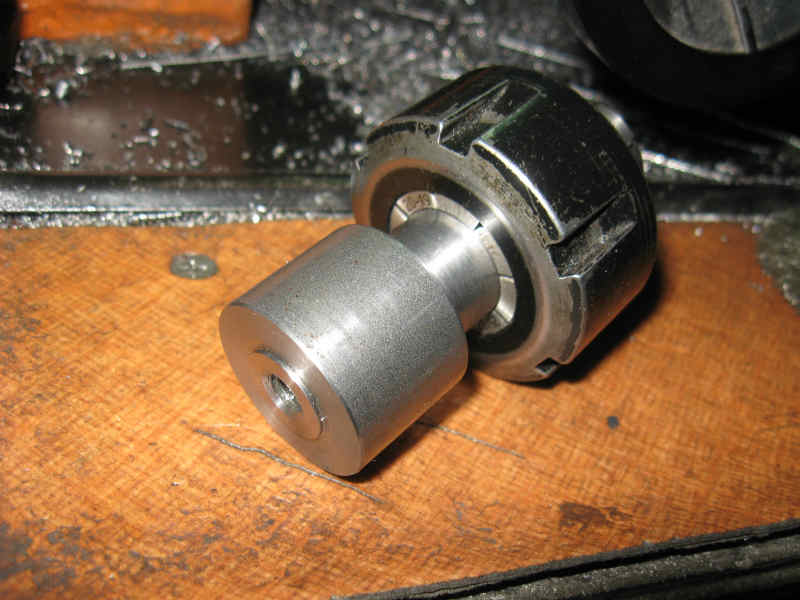 で、ほとんど完成していますがチャック側は20φの軸とし、このコレットチャックの底面形状に合う様に