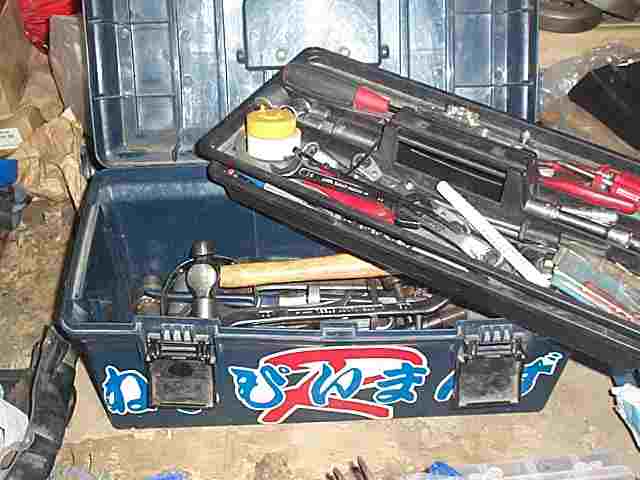 これはサーキットに持ち運ぶので、トランポへの積載性を考え普通のケースに工具を詰め込んでいます。