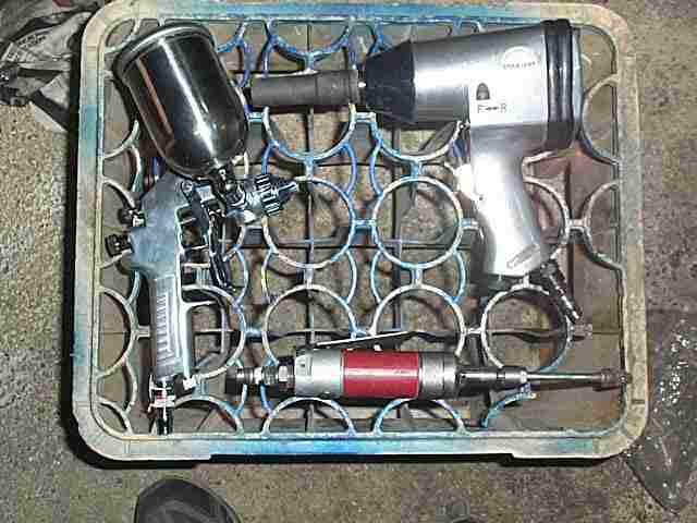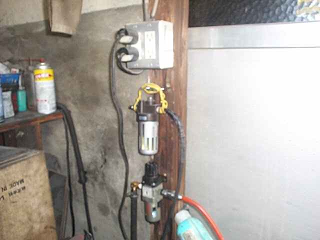 右下の箱の中には1.5馬力で30リッターのコンプレッサーが入っていますが、さすがにDIYを超えたLVの作業をするには非力です(泣