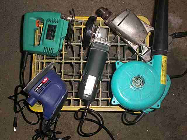 とりあえず…ジグソー、マウスサンダー、ディスクグラインダー(通称サンダー)、電気ドリル、ブロワーです。