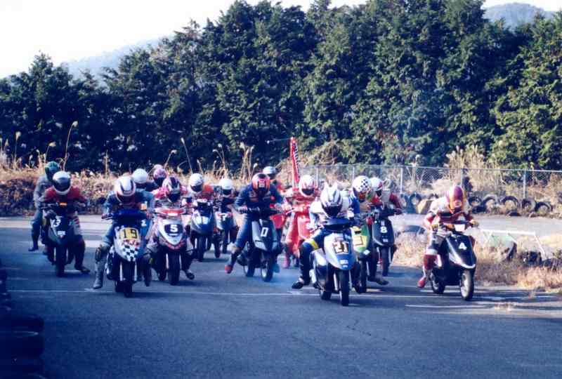 80年代のミニバイクレース創世期にはノーマル&改造スクータークラスも開催されていた模様ですが、