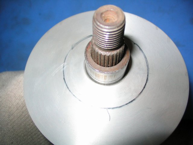 マジックを当てたままフェイスごとドライブユニットを回転させるとプーリーのベルト摺動面にはこういった円が描けます。