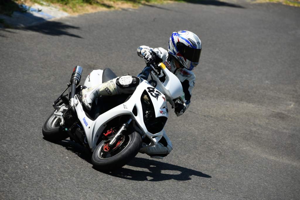 先週の徳島でテストしたレーシング125を駆り、FNマシンレベルより2秒程度速いタイムを叩いていましたよ。