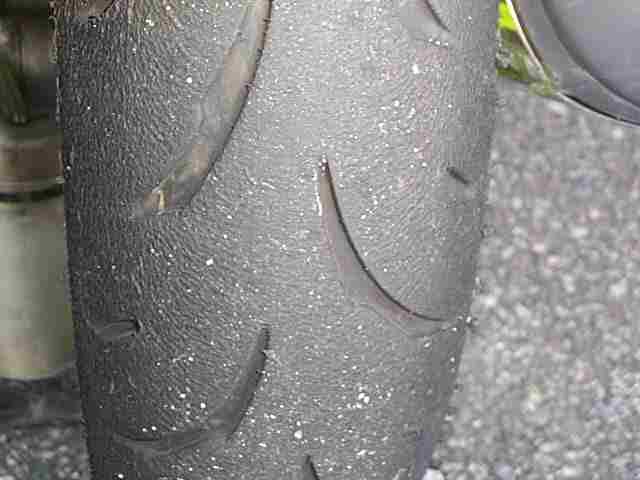 フロントはもっと酷いのですが…今回NEWタイヤが買えず2年落ち5部山中古タイヤなのでまあこんなものかと(爆