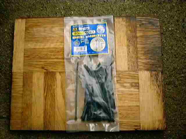 この結束バンドはホームセンター等の家電製品コーナーで入手しています。