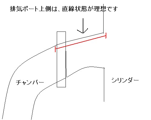 後、排気ポート上端部からチャンバー取り付け口(穴)の上側までは確実に「直線ライン」で仕上げるのが理想ですね。