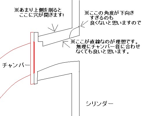 (こういう形の場合、排気ポート上側はノーマルより広くなります)