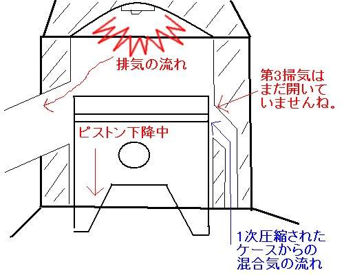 もちろん排気ポートが一番速く開きますが、掃気ポートが開くまでにはある程度排気を行っておく必要があります。