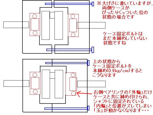 …左右のベアリング玉のセンターがキッチリ出ないのではあんまり意味が無いと思いますが、何度もケースを割るよりははるかにマシなので(汗