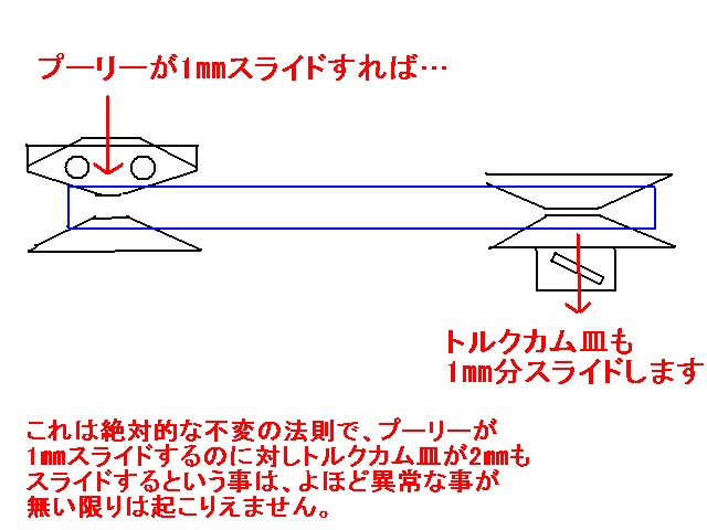 ・プーリーの横スライド量=トルクカム皿の横スライド量
