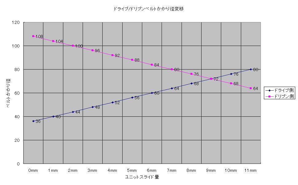 この「ユニットスライド量」に対し、仮に1oのユニットスライドが起こると、ベルトかかり径ももちろん
