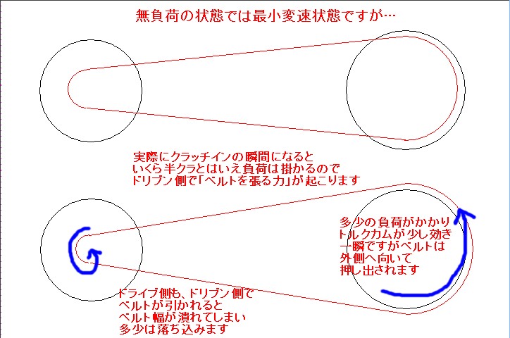 「半クラ」が無い変わりに「半ベルト」とでも言えるベルトのスリップが起こっているんです。