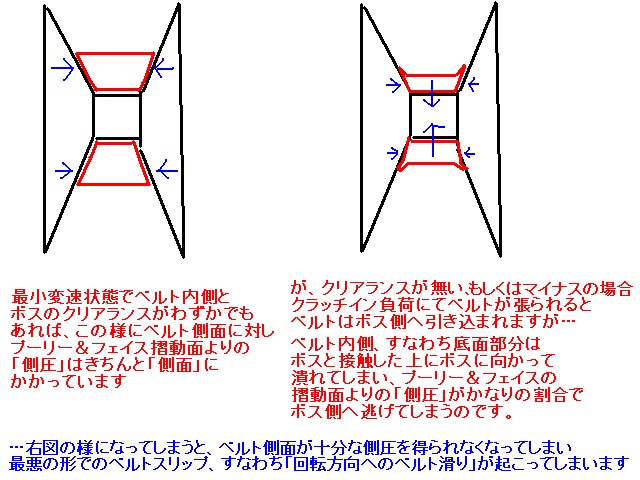 「ベルト側面への側圧」がボスに逃げまくってしまい、最低限度ベルトをグリップさせるだけの側圧すら