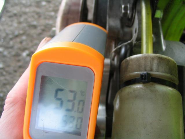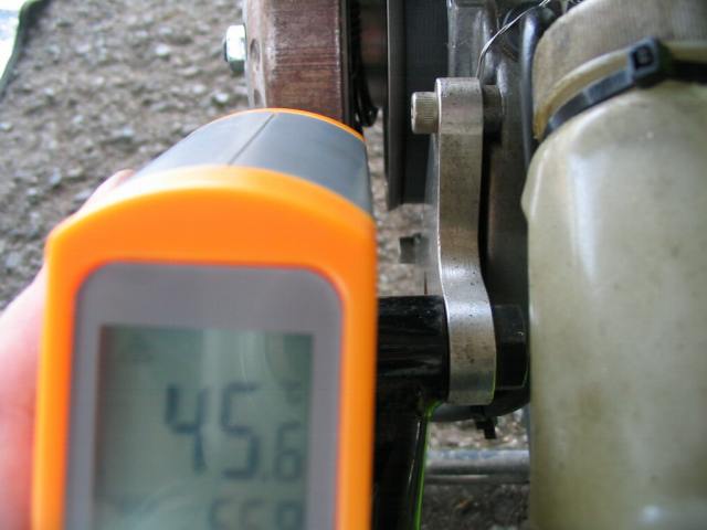 数値と遜色ない「10100rpm」程度に落ち着いた時点で即ピットインし、すぐに駆動系カバーを外して温度計測を