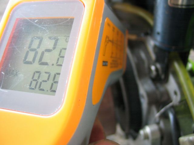 ちなみに、熱くなりそうなイメージのあるリヤブレーキシューの入っている部分なんかは80℃あるかないかでしたよ。
