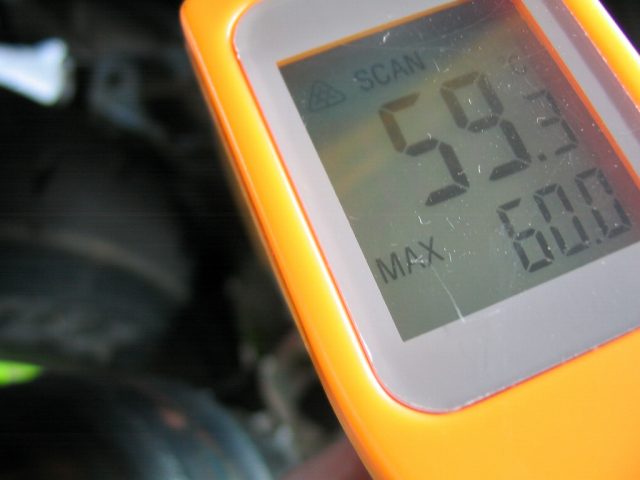 で、前述のスクーターチャンプの温度であればサーキット走行後の車両で約65℃程度となっていましたが、