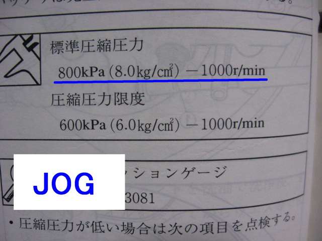 するならばこの圧縮圧力値をアテにし、厳密に言えばJOGの方が圧縮比も高いのに何故に圧力が低く、