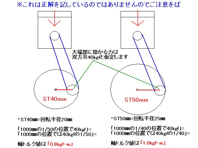 とまあ、これはコンロッド大端部のクランクピンの中心点には「40kgf」の力が掛かって