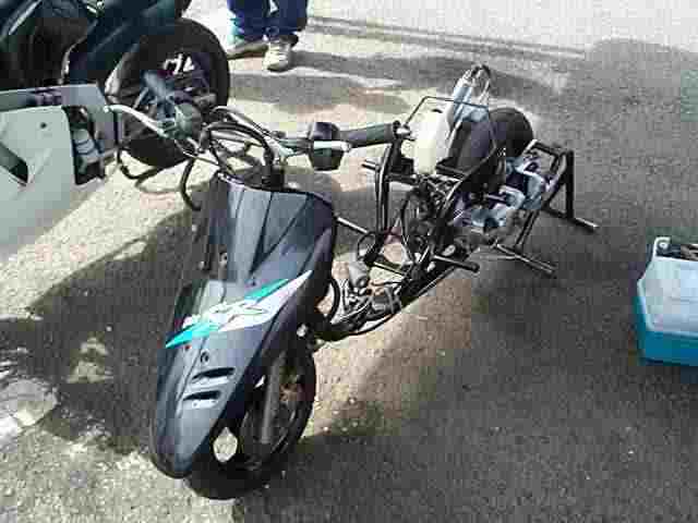 マシン製作者の方が、昔乗っていた改造スクーターを犠牲にしてフレームを調達したそうです。