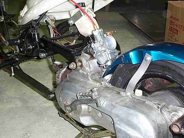 見えにくいですがセンターサブフレームの中を水が回ってる水冷ですよ(笑