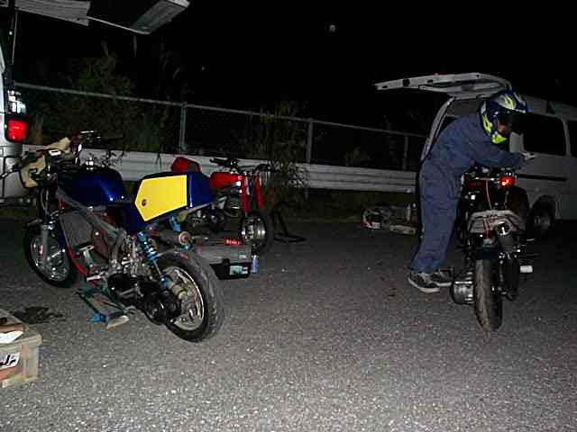 ここでN氏のマシンに火を入れ、暗い中キャブを詰めて行きました。