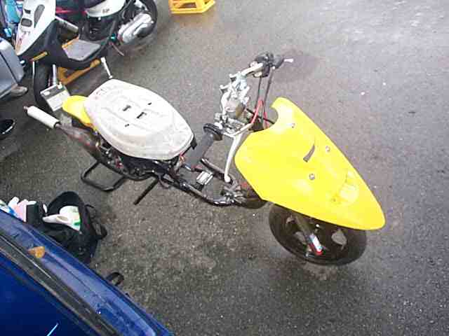 今回大幅なモデファイを施したのは縦型1号氏の縦型JOGなんですが、腰下を大改造したのでチャンバー特性が合わなくなり…急遽借り物のチャンバーで参戦ですが(汗