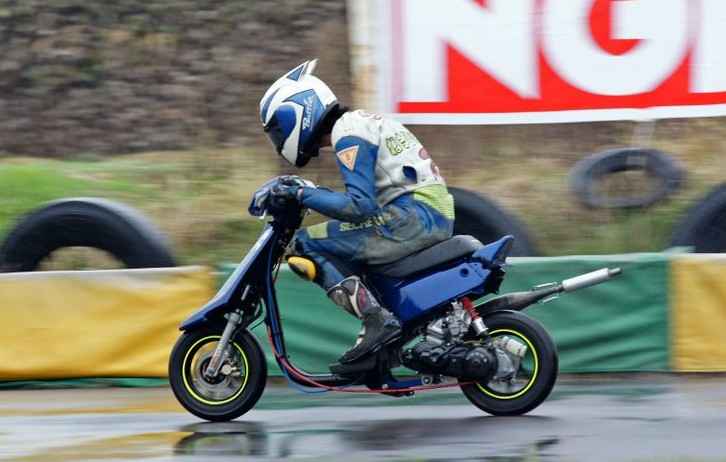 が、そこは勝手知ったる地元の雨路面、アクセルを大きく開ける事は出来ませんがデリケートなスタートをかまします。