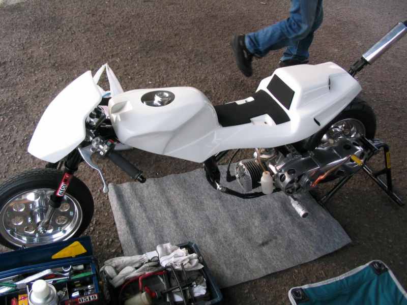 ベースフレームはモンキーですが、これにFRPのタンクシートをかぶせ、昔のFSちっくなスタイルになっています。