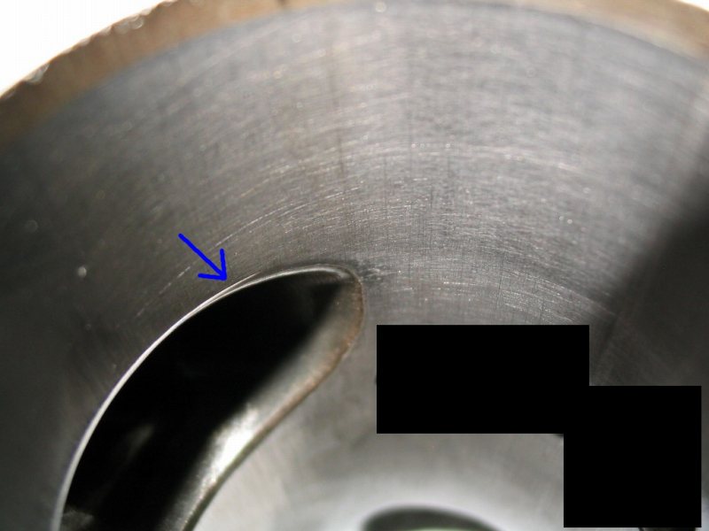 面取り部分のさらに奥までリングが飛び出してしまっていて、モロに排気通路面に近い所に打ち付けられて