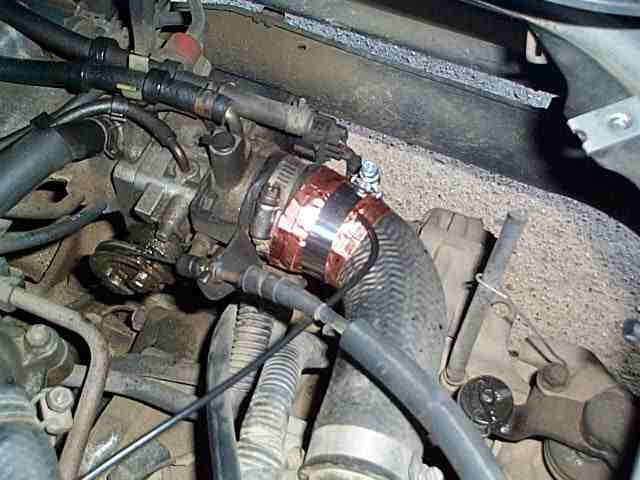 吸気側、スロットルの直前に装着し、アースを取っています。