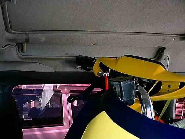 このような物↓を作ってハンドルに被せ、車の内壁に押し付けています。