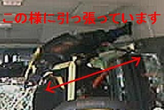 リヤ側はハンドルとは逆に、左側に向かって引っ張ります。